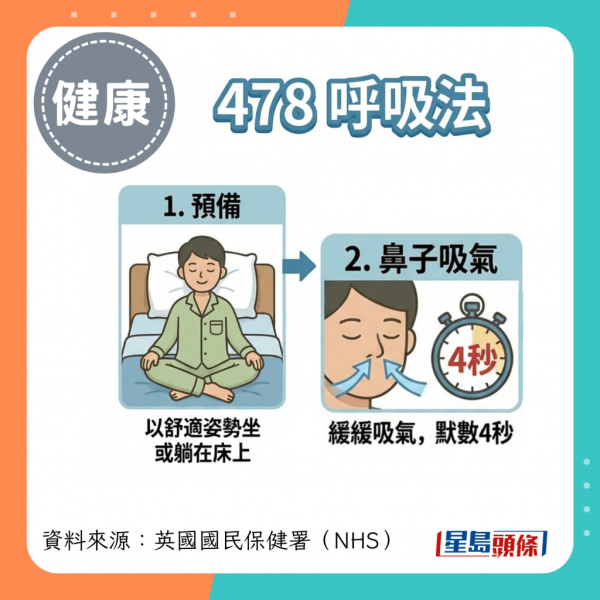 不少都市人都有失眠問題。近日Threads瘋傳「478呼吸法」可改善睡眠、減少焦慮,更獲網友大讚「超有效」、「重複4次就入睡」,「478呼吸法」是甚麼?步驟如何進行?