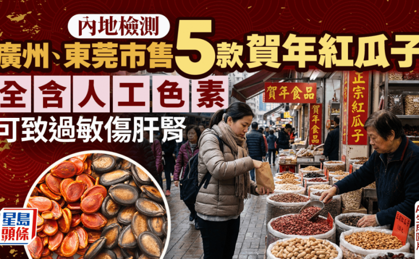 中國內地檢測廣州、東莞市售5款賀年紅瓜子 全含人工色素 可致過敏傷肝腎