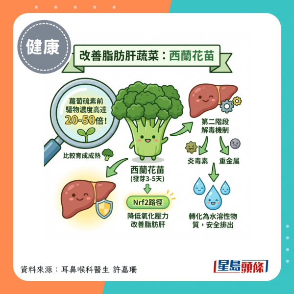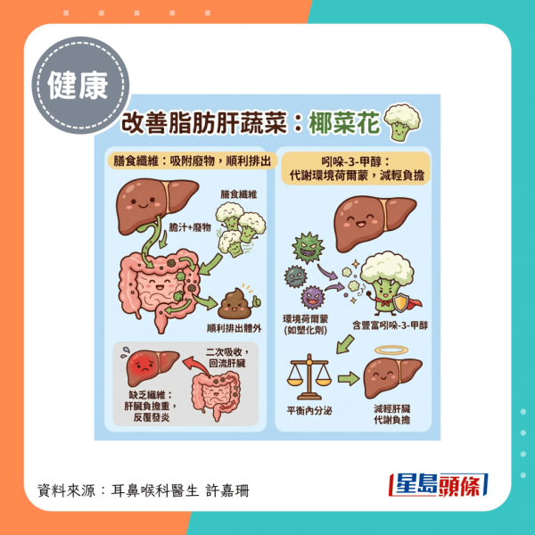 耳鼻喉科醫生許嘉珊在其Facebook專頁發文指出,常遇到患者身體檢查發現有脂肪肝,體力也越來越差,被問是不是要吃保肝藥?比起直接回答這個問題,她特別推介以下2種十字花科蔬菜,有助肝臟解毒,甚至改善脂肪肝: