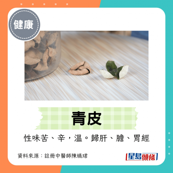 香港人無論蒸魚、煲湯或泡茶都會用上陳皮。陳皮越陳越香,價值和藥效也越高,但還有一種相似的藥材名為青皮,容易令人混淆。註冊中醫師陳嬿珺接受《星島頭條》訪問,解構陳皮和青皮的功效、用法上有何差異。她提醒,如果用錯青皮恐有損身體正氣。哪些人尤其不宜服食?