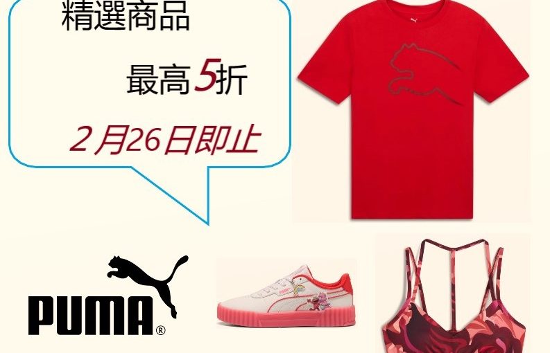 PUMA推出精選款式限時優惠,多款人氣鞋履與運動服飾加入折扣行列,折扣低至 5 折。優惠時間至 2月26日。