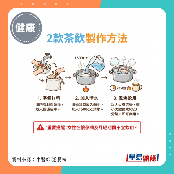 - 以大火煮滾後,轉小火繼續煮約20分鐘,即可飲用。