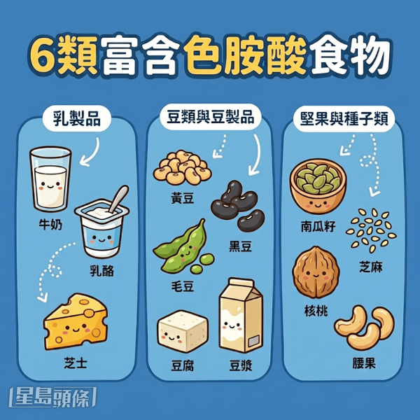 睡覺前不只喝熱牛奶有效改善失眠!有營養師特別推介補充6大含色胺酸食物,能製造「快樂荷爾蒙」,有助放鬆心情、對抗焦慮,更能帶來優質睡眠。