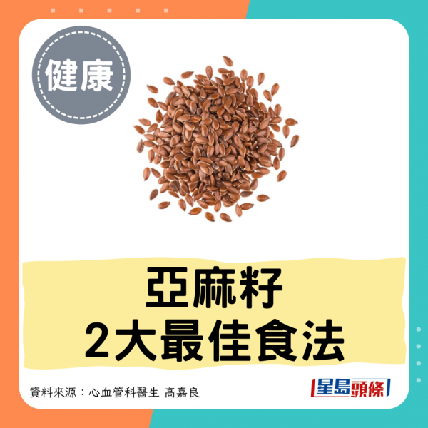 心血管科醫生高嘉良在《CCTV生活圈》節目中指出,有「超級食物」之稱的亞麻籽,具潤燥通便、養血祛風的功效,每天適量食用,不但有助於緩解腸燥便秘、皮膚乾燥、痕癢、掉髮等症狀,對減肥及降血脂亦有奇效。