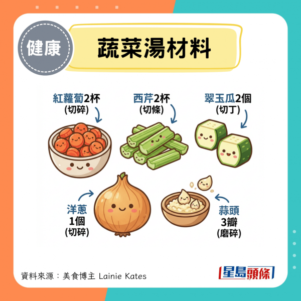 美食博主Lainie Kates在Instagram上發布一段視頻指出,她的82歲婆婆為了保持最佳健康狀態,經常會提前預備1款長壽湯,作為平日午餐和晚餐。這款長壽湯是意大利家常的意式蔬菜湯,是一種以番茄為湯底的經典意式湯品,材料豐富。此外,婆婆更會加入豆類,而豆類富含植物性蛋白質和膳食纖維,飽足感強,營養豐富,經常食用,有助於降低心臟病的風險。婆婆這款長壽湯的詳細食譜如下: