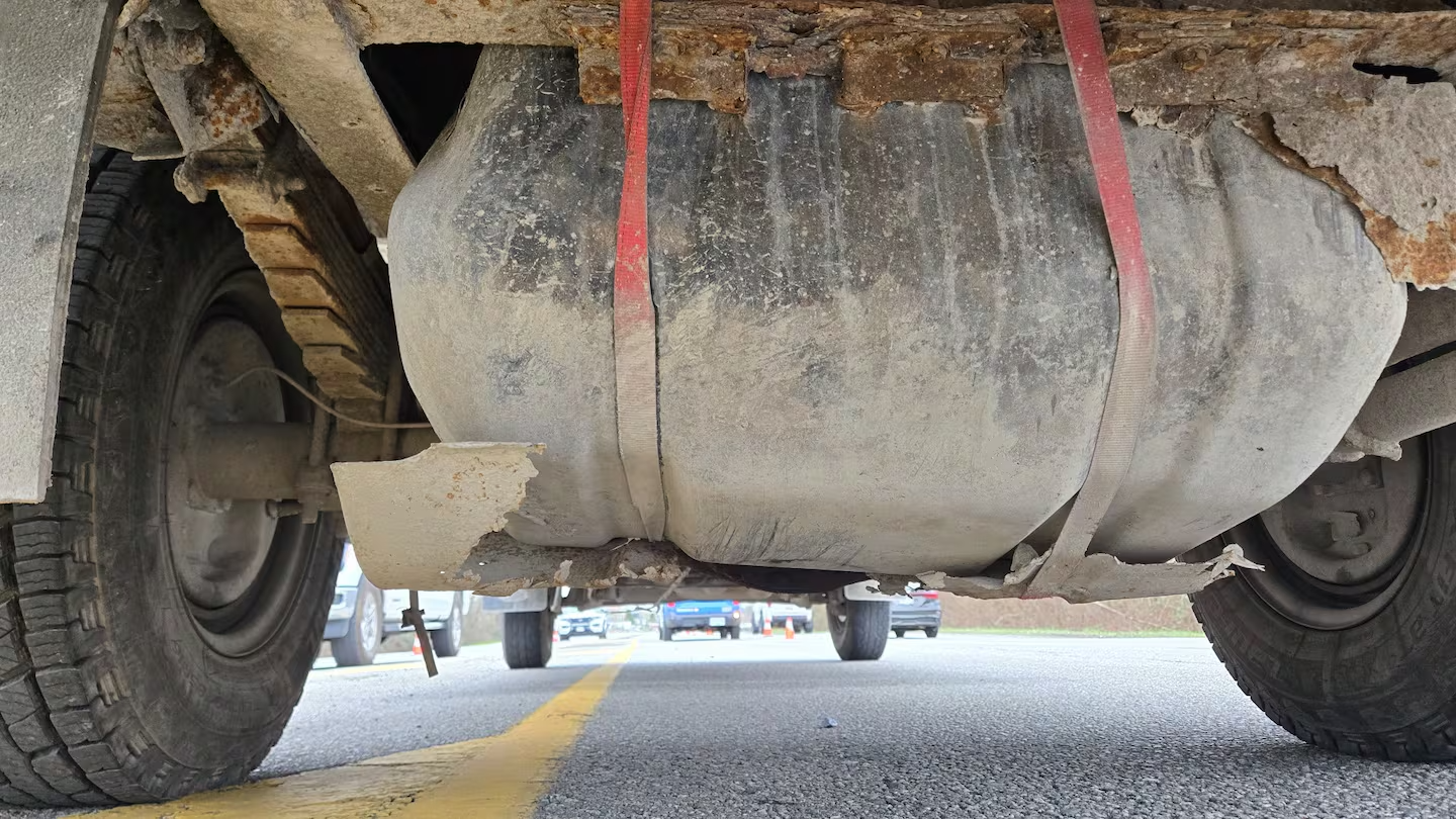 聲明續說:「油箱僅用兩條不合格的綁帶固定在車輛上;其中一條綁帶已損壞,另一條則壓在油箱外殼的破損處,導致綁帶被割破。」