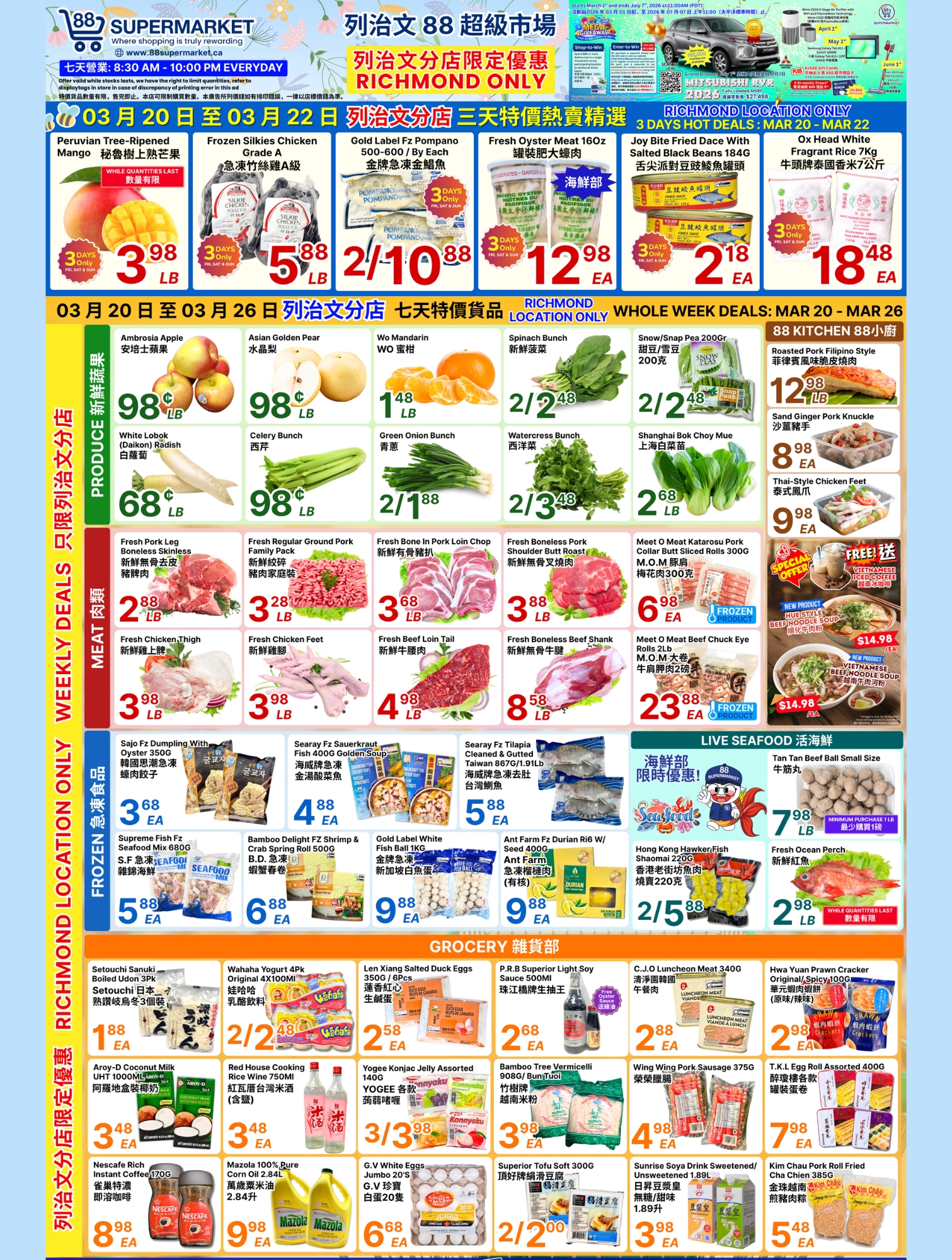 【超市情報】大溫哥華區一周優惠清單出爐(3月20日起) 【星島訊】今個禮拜本地超市優惠傳單已經出爐。 詳情請瀏覽星島傳媒全方位生活網站 ccue.ca 特價專頁。 以下為卑詩省優惠清單,在全國範圍可能有部分貨品的價格略有不同,以官網標價為準。 (圖:加通社資料圖片) V6