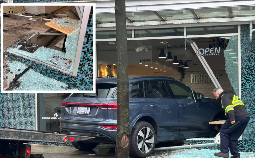 【星島綜合報道】溫哥華市中心一家Pokerrito餐廳,周五(20日)上午遭一輛SUV汽車撞入大門,店內損毀嚴重,所幸無人重傷。