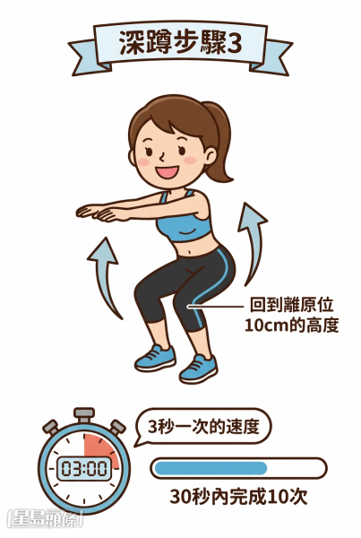 3. 不完全站起,回到離原位10cm的高度。