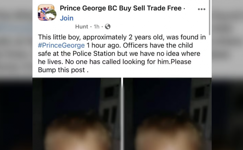 卑詩省喬治王子城的皇家騎警表示,最近在當地一個「買賣」群組中出現了一則此類帖子,聲稱一名 2 歲男孩被找到,但與父母失散。類似的貼文也出現在美國 2 州的社區群組。