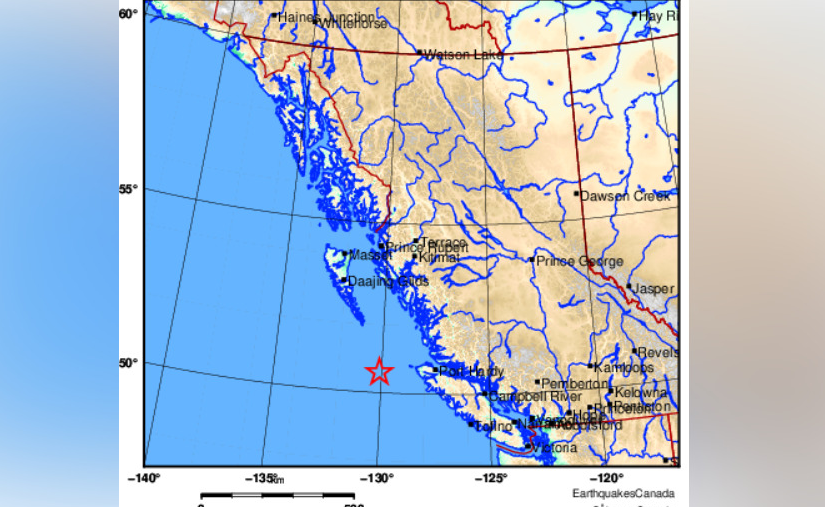 【星島綜合報道】根據卑詩省緊急資訊中心(EmergencyInfoBC)消息,星期日上午,溫哥華島哈迪港(Port Hardy)以西180公里處發生4.8級地震。