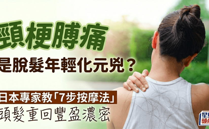 脫髮年輕化問題日益嚴重,除了壓力、營養缺乏等因素,都市人相當普遍的肩頸痛症,原來都會導致掉髮增多、頭頂越來越稀疏。有日本頭髮專家分享「頭皮逆齡按摩法」,幫助放鬆肩頸肌似,同時養出健康頭皮,令髮絲茁壯成長,遠離頭髮危機。