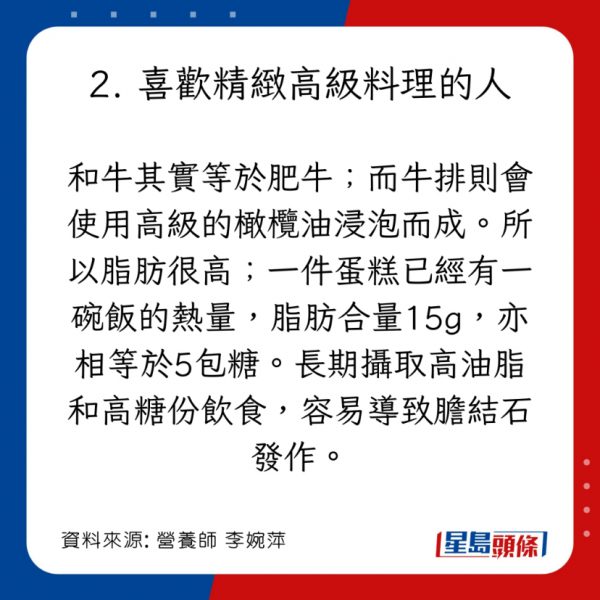 - 主要誘發因素:長期空腹、不吃早餐、高油、高脂、高膽固醇的飲食習慣;肥胖導致膽汁中的膽固醇水平升高;或在短時間內快速減重,擾亂了膽汁代謝。