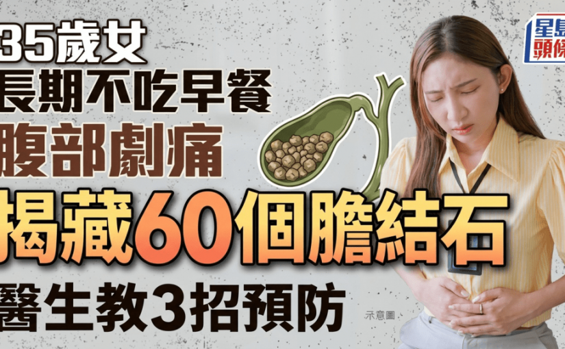 不少上班族為趕時間而犧牲早餐,但這個壞習慣隨時有損身體健康。中國內地一名35歲女子因長期不吃早餐,出現腹部劇痛,求醫後竟發現膽囊內藏有多達60粒結石。有醫生也教3大方法,預防膽結石。