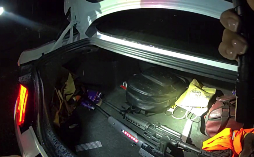 「一家四口駕駛SUV沿著Davis Lake附近的森林服務道路行駛時,聽到附近有槍聲;然而,當聽到另一聲槍響後,父親聽到車內有動靜,回頭一看,發現一顆子彈在其中一個孩子安全座椅的杯架內旋轉。」