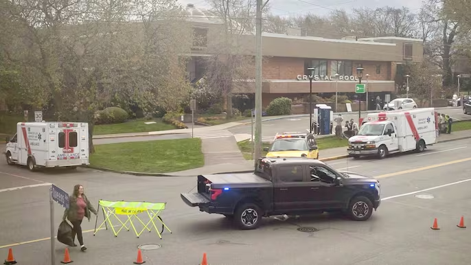 【星島綜合報道】卑詩省維多利亞市水晶游泳池(Crystal Pool)周五(10日)發生氯氣泄漏事故,導致八人入院,居住在彭布羅克街(Pembroke Street)的居民被告知待在室內並就地避險。
