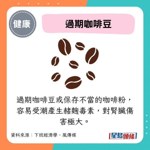- 過期咖啡豆或保存不當的咖啡粉,容易受潮產生赭麴毒素,對腎臟傷害極大。建議濾掛式咖啡應在開封後10天至2週內飲用完畢,或存放在防潮箱。輕烘焙咖啡的綠原酸濃度較高,抗氧化效果較好。