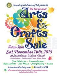 Toronto East Rotary Club’s 6th Annual Arts and Crafts Sale展銷本地畫家和手工藝製作者創作的作品。現場還有音樂及兒童游戲節目。