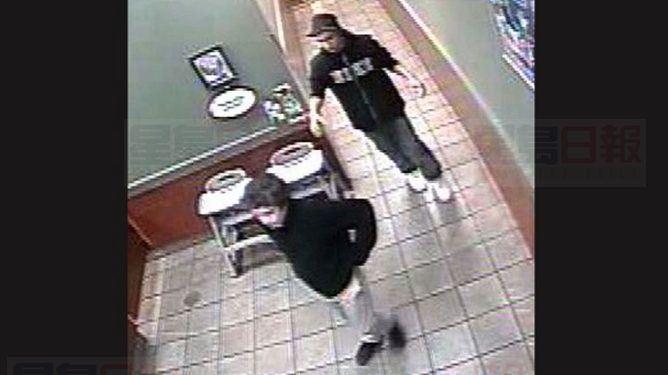 兩人據描述都為白人,18到24歲,約5英呎10,瘦,棕發。一人當時穿白色鞋子,藍色牛仔褲,黑色帶帽衫,上有白色字母,戴棕色桶帽。另一人當時穿黑色鞋子,白色長褲,黑色針織衫。