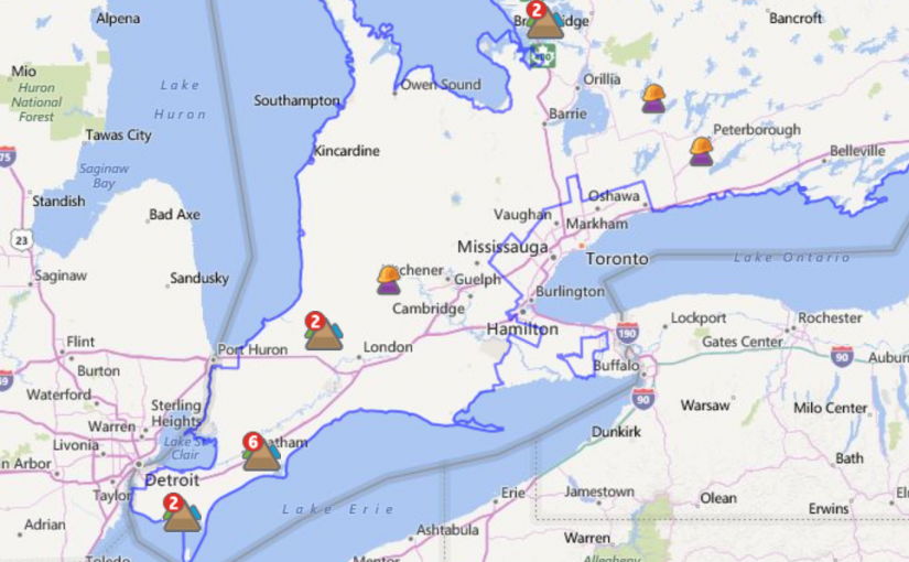 截稿前停電狀況 ﹣ 圖片源自:Hydro One