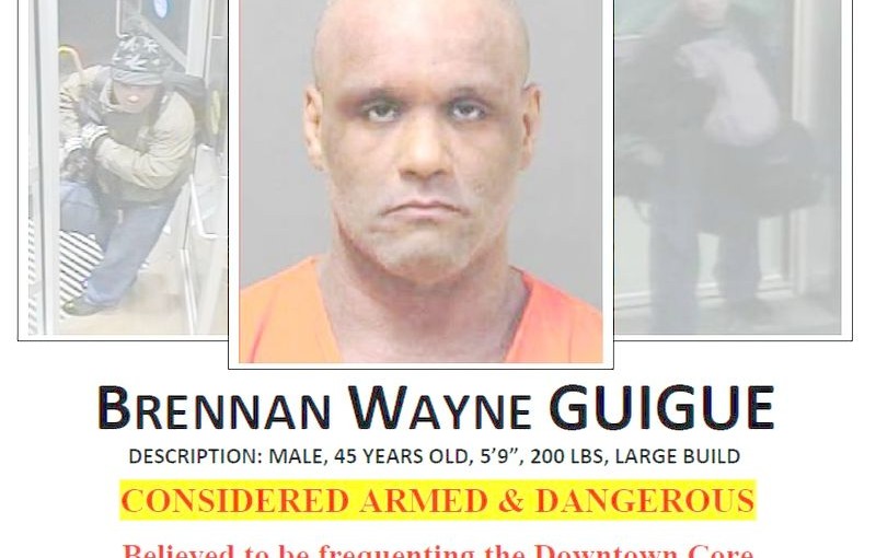 警方相信此人正是一直被警方通緝的Brennan Wayne Guigue。警方稱,此人持有槍械武器,是一名危險人物,若果你在街上看見嫌犯蹤影,千萬不要與其接觸,請馬上致電911。
