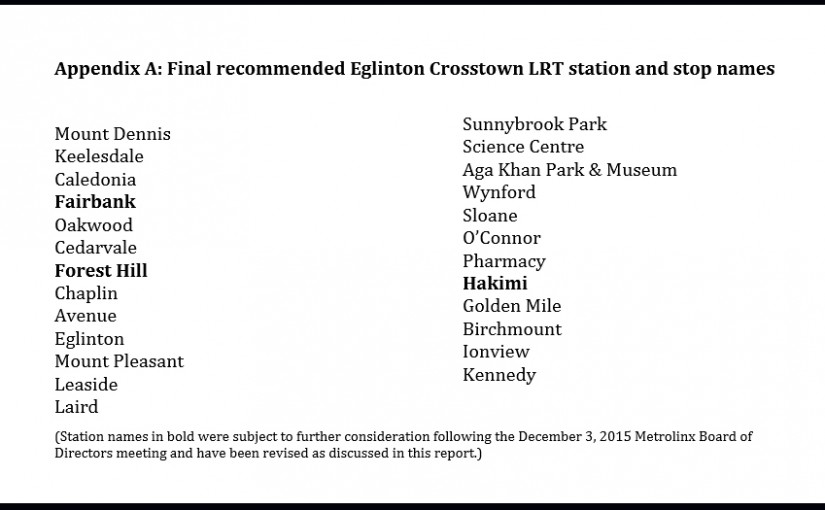 Metrolinx最新站名 明日進行討論 Metrolinx供圖 據CityNews報道,Metrolinx列出一系列站台名稱,在週四將聽取員工意見,下最後決定。 這次電話會議對外公開,所有人都歡迎來收聽。會議時間定在週四下午2點左右,持續約30分鐘。圖中所提議的名字在10月已經經過一輪公眾評審,後來TTC又提出意見進行修改,目標做到不與其他站名重複字眼,避免混淆站名。 Metrolinx供圖 若想收聽討論請點此 C04