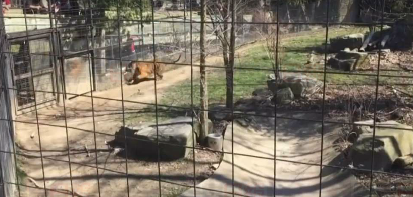 據680新聞報道,早前Youtube上有人放出一紅衣女子跳老虎籠撿帽子視頻,多倫多動物園將針對此事進行調查。
