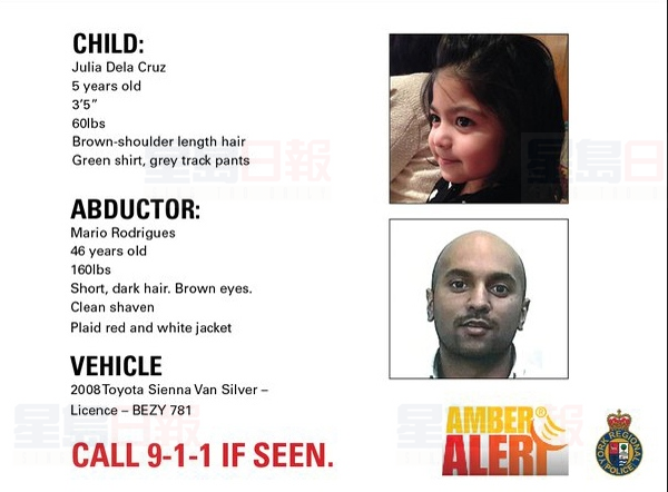 據CP24報道,Aurora五歲女孩被父親綁架,警方發出安珀警報。