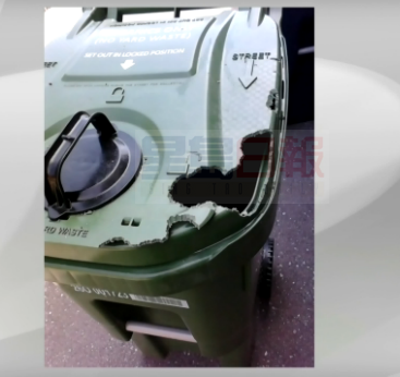 昨日,一個居民發了一張照片給CP24,照片上顯示,垃圾桶的頂部出現大洞,還有抓痕。這名不願透露姓名的居民住在the Pharmacy 交 St. Clair avenues地區。該人士說,破壞是在幾天里造成的。