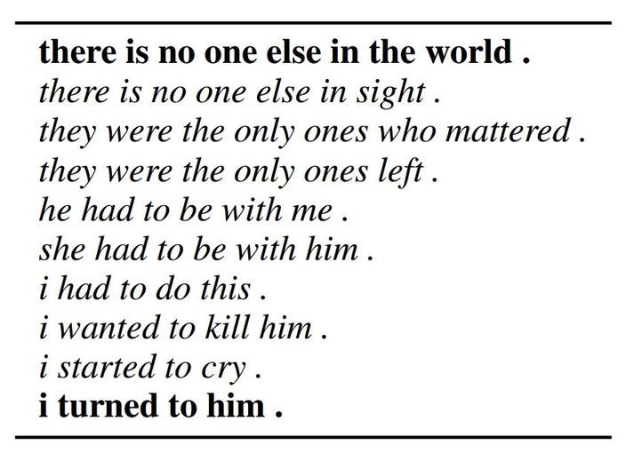 Google一份內部研究報告總結開發新系統的理念和過程。研究員讓AI讀完大量愛情小說後,要求系統嘗試寫作。他們其中一項實驗是提供了開始和結束句子,由系統增補最多13句說話,看看會成為怎樣的作品。
