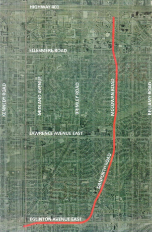 士嘉堡地鐵延伸線計劃將在週二的公開會議上揭幕。地鐵線將從Kennedy Station出發,沿Eglinton Avenue East前行,, 再沿Danforth Road 和 McCowan Road向北,一直到Ellesmere Road。目前為止,約有兩家商鋪和八棟住宅將受到線路影響。