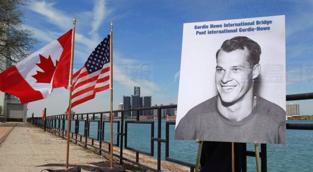 這座新大橋以六月份去世的底特律紅翼隊(Red Wings)傳奇冰球選手Gordie Howe命名。