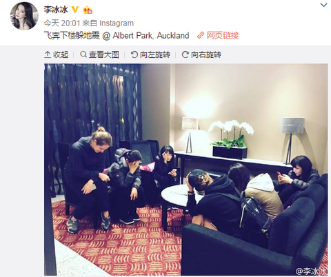 李冰冰經歷新西蘭大地震 微博報平安
