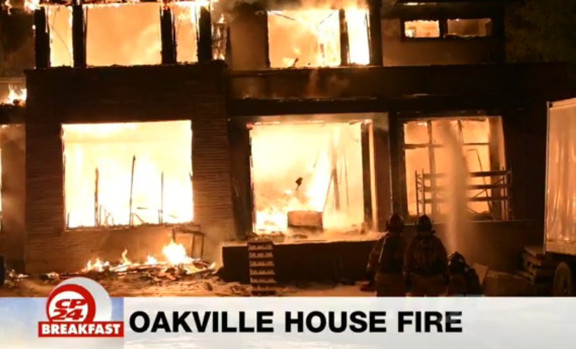 奧克維爾興建中房屋大火 毀於一旦 視頻截圖 據CP24消息:奧克維爾今日凌晨位於Morrison Heights Drive的一座興建中的房子發生大火,房屋被燒得僅剩支架,損失嚴重。荷頓區警方稱,事發今日凌晨1點40左右,大火也蔓延至臨近房屋,警方疏散附近住客。 C03