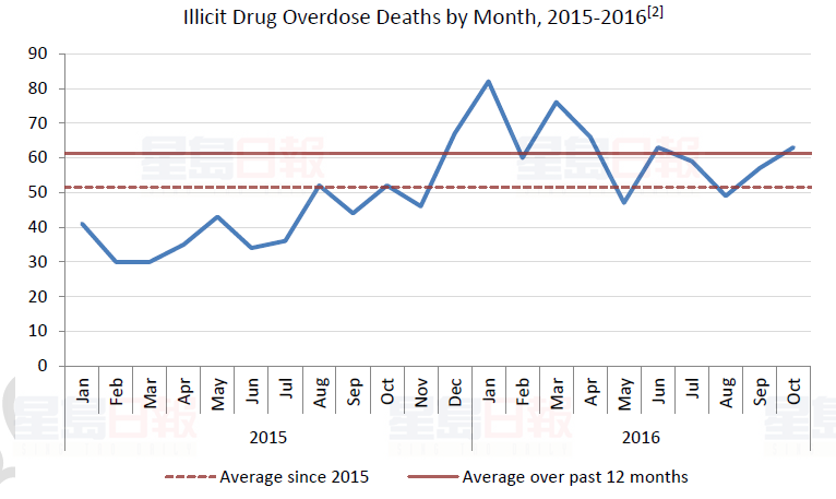 卑詩省驗屍服務處11月16日星期三公布﹐2016年首10個月因吸食過量毒品致死人數上升到622人﹐平均每日有兩人喪生﹐2015年同期死亡人數是400人.
