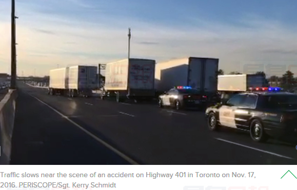 據680新聞報道,週二下午3點15分左右,一名40多歲的男子在Highway 401上被一輛商業卡車撞傷,傷情危急,被送往醫院。