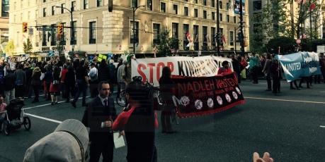 據英語電台CKNW報道﹐溫哥華市政府大樓外11月19日中午有大型集會和遊行﹐抗議油公司Kinder Morgan 的 Trans Mountain輸油管擴建計劃﹐要求聯邦政府否決申 請﹐約1000人參加。