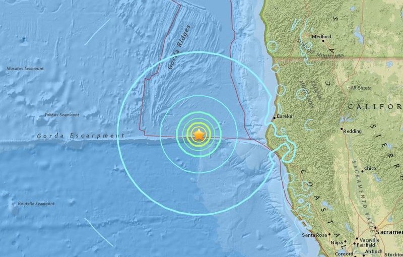 地震震央位於加州北部離岸海域﹐三藩市西北約450公里。