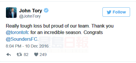 據CBC報道,北美足球大联盟(MLS)冠军杯争霸战周六举行,多伦多队(Toronto FC)未能把握主场之利,遭西雅图海湾者队(Sounders)凭互射12码罚球,以5:4击败。