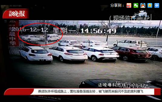 現場監控錄像顯示,事發時間為12日下午2時56分,面包車此前一直在由南向北方向行駛,事發時正在路中間左拐,車頭剛剛進入反向車道後,快速行駛中的賓利車躲閃不及,便發生了這起車禍。兩車相撞後騰起一片煙塵。面包車被撞到路邊,賓利車繼續向南沖去,沖出了監控畫面。據目擊者稱,這輛賓利車撞斷一根路燈桿,並掉進道路下方的一條河中。