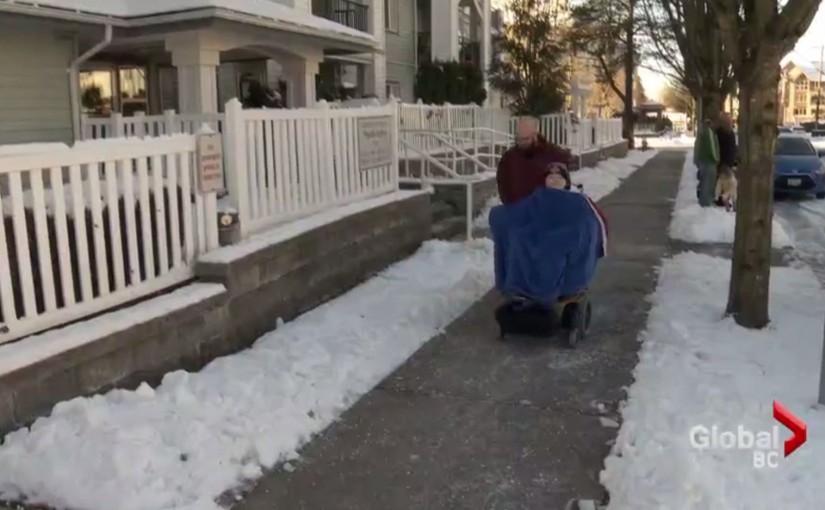 據Global News報導﹐卑詩省楓樹嶺一名需要乘坐輪椅的男童﹐因路面結冰而未能回校上課。