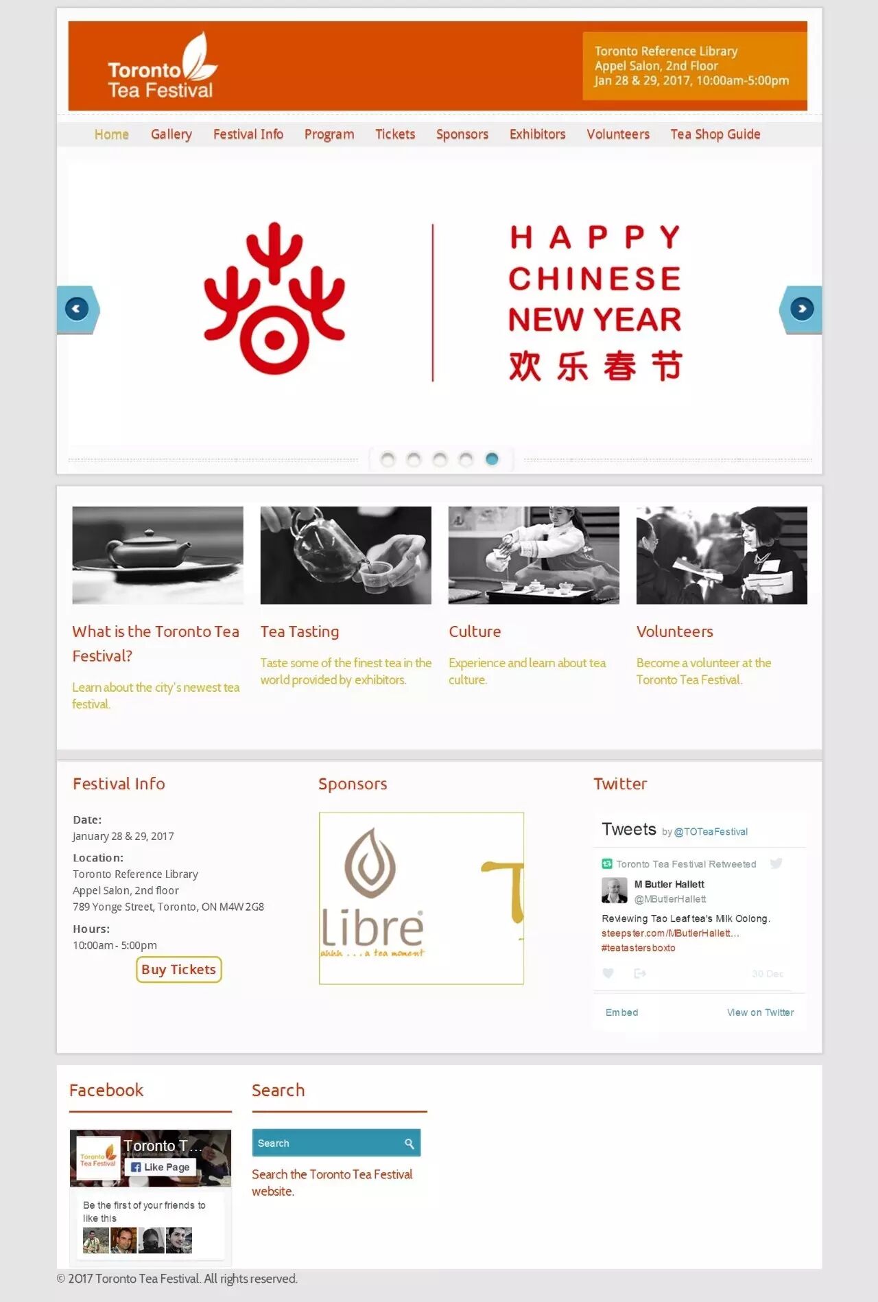 2017年駐多倫多總領館領區“歡樂春節”系列活動共有18個重點項目。包括:CN塔小年夜亮燈,Dundas Square及Union Station“歡樂春節”視頻大屏幕播放,3台晚會(中國僑聯“歡樂春節”親情中華晚會、加拿大中國戲曲藝術協會“歡樂春節”戲曲春晚、溫尼伯“歡樂春節”華人春晚)、5場音樂會(李德倫音樂基金會“歡樂春節”中西匯粹新年音樂會、中國廣播交響樂團“歡樂春節”世界電影經典新春交響音樂會、多倫多交響樂團“歡樂春節”中國新春音樂會、多倫多華人藝術家中心“歡樂春節”金雞報春音樂會、北京交響樂團“歡樂春節”音樂會),多倫多大學圖書館的“歡樂春節”中國故事展覽,天世網絡和加拿大國際電視台的“歡樂春節”中國文化主題新片展播及第五屆多倫多茶文化節等等。