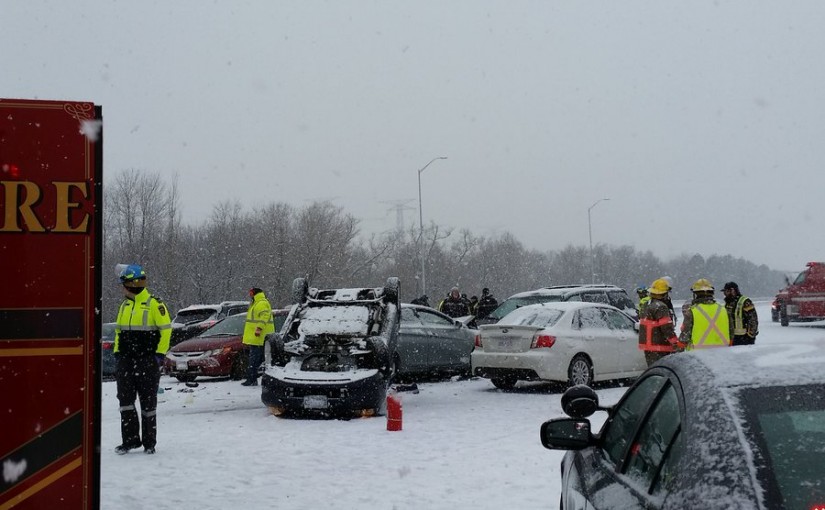 週四下午2點左右,401高速東部Bowmanville 和 Port Hope之間因為積雪導致路面能見度下降,大雪紛飛路面太滑,大量車子失控連撞。警方說此次意外里沒有人受重傷,但部分居民被送去醫院治療。