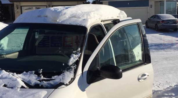 據CBC報道,溫尼辟男子Jonathan McCullough收到一張近240元的罰單,原因是他駕駛的小麵包車(minivan)車頂上積雪太厚,不安全。