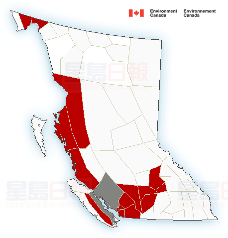 此外,Sea to Sky公路的西溫哥華Upper Levels至 Squamish有下雪警告,降雪量約15厘米,環境部亦向大溫哥華地區發出特別天氣聲明,降雪量界乎2至5厘米,星期日稍後將轉為下雨或冰雨。
