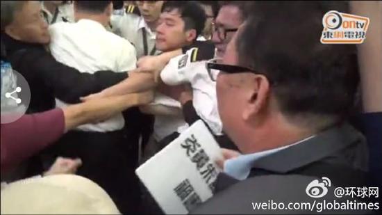 [環球網綜合報導記者趙衍龍]香港“眾志”秘書長黃之鋒、“立法會議員”羅冠聰、以及2名主張“自決”的“議員”朱凱廸、姚松炎日前赴台出席“台獨”組織的論壇,其中黃之鋒和羅冠聰由出發到台灣都分別遇到示威。繼黃之鋒今午返港時遇到示威,羅冠聰今晚返港落機時亦疑遇襲。香港東網1月8日報導稱,抵港後的羅冠聰被多名示威人士撕破衣服,更被淋疑似奶茶的液體,羅最後在保安的護送下乘坐的士離開。