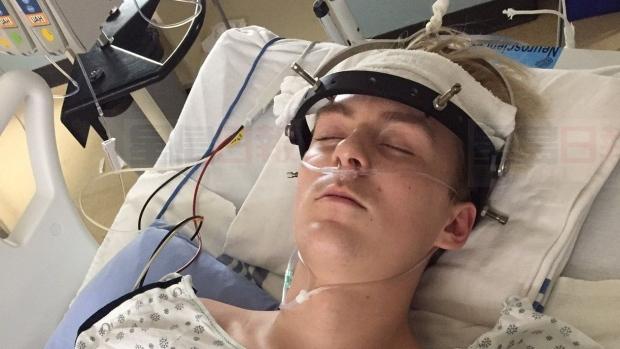 Landon Smith現在正躺在亞省大學醫院病床上等待接受手術。他的弟弟Jordan介紹,哥哥脊椎受傷,頸部韌帶撕裂。