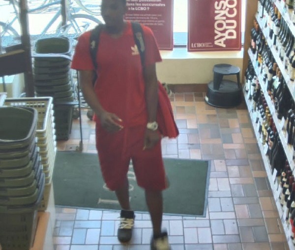據描述,這名男子為25至30歲,大約6尺6,作案當日身穿紅色Adidas的T恤與紅色短褲,身上背著一個黑色的背包,腳穿黑色球鞋。