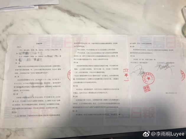 網紅李雨桐自曝被薛之謙騙錢騙感情,網紅張大奕、灣灣等發聲力挺。有網友質疑其只是薛之謙聘期的模特並非合夥人,9月13日,李雨桐曬出合同,證實自己的合夥人身份,並稱現在是一個法制的時代,她提供的所有證據屬實。