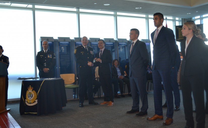 溫哥華市警周五舉行155班宣誓儀式,有20名新丁宣誓成為警員,並由溫市警察局長帕爾默(Adam Palmer)逐一頒發警章。在20名新丁中,唯一一名華裔是34歲的黃健倫。在多倫多出生及長大的他,7年前移居溫哥華工作,後決定加入溫市警隊。他向《星島日報》記者稱,自小便希望成為一名警察,能夠成為溫市警隊的一員,感到十分自豪。